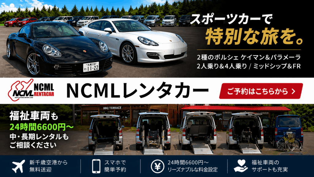 NCMLレンタカーは、新千歳空港近くでご利用いただけるレンタカーサービスです。